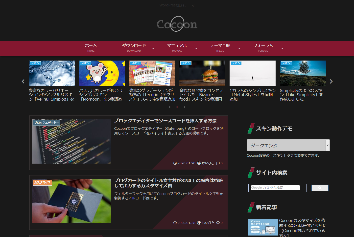 ワードプレステーマCocoonのスキンを「ダークエンジ [作者: y.hiroaki]」に変更しました。