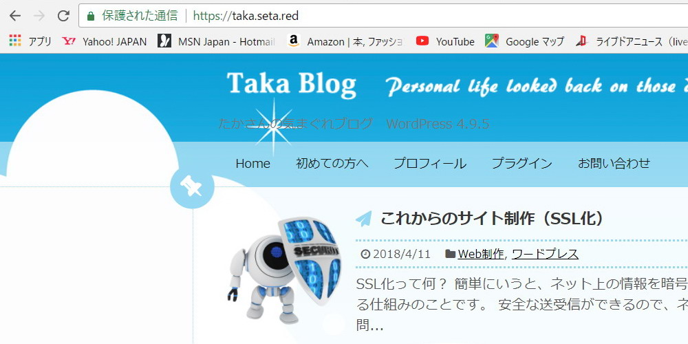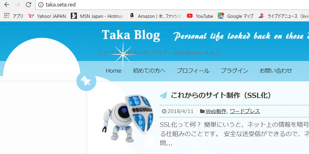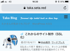 それでは、ロリポップにインストールしたワードプレスのブログを例にSSL化してみましょう。次のブログをどうぞ。