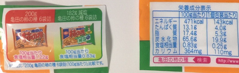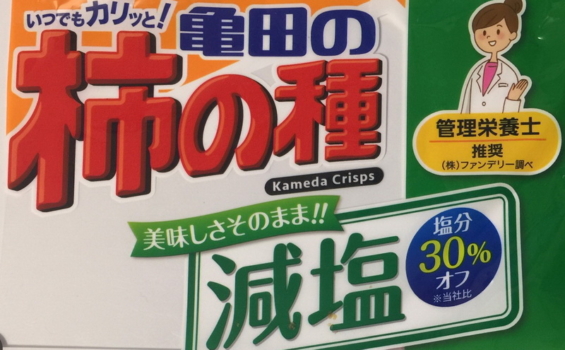 減塩の柿の種は、100gで0.83gなので、0.83/1.22=0.68 約30%の減塩ですね。