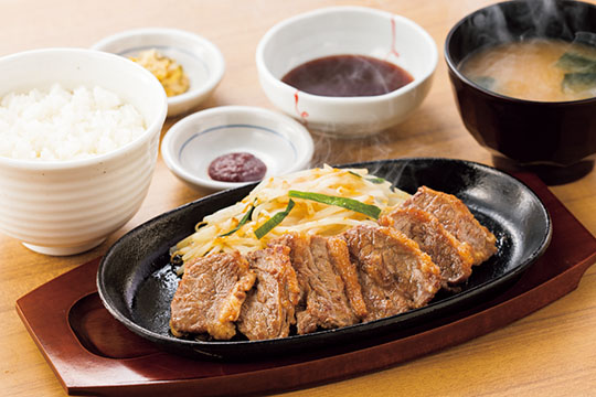 玉ねぎや長ねぎの入った、甘めの醤油ベースの特製だれで漬け込んだ牛カルビ肉を焼き上げ。