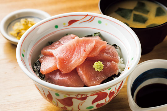 まぐろの切り身を贅沢にのせた海鮮丼の人気メニューです。