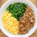 - ゆで卵を5mm幅に切り、チェダーチーズは5mm角に切ります。