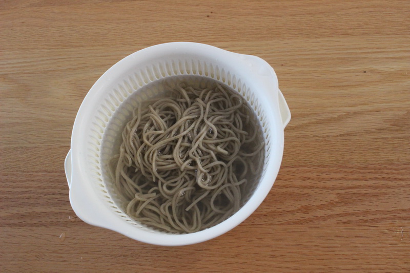 2.器にそばを入れ流水で洗い、さらに熱湯で湯がいてお湯を切る。