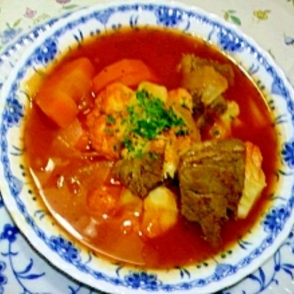 寒い時期になると恋しくなる熱々で野菜タップリのトマトシチューです。冬の定番メニューです。