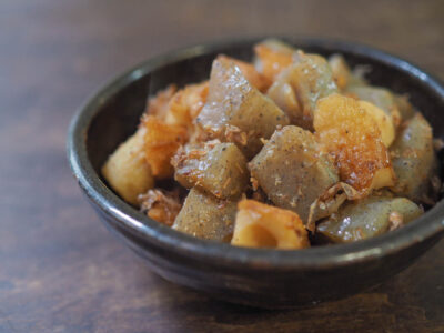 - こんにゃくは、乾煎りすることで嫌な臭いが消えます。