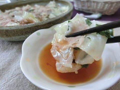 豚肉とキャベツをレンジで蒸し、ポン酢でさっぱりいただきます。