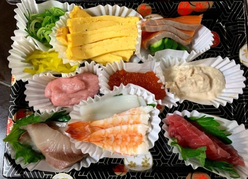 いくら醤油漬け、いかそうめん、サーモンアボカド、マグロ中落ち、コーンマヨネーズ