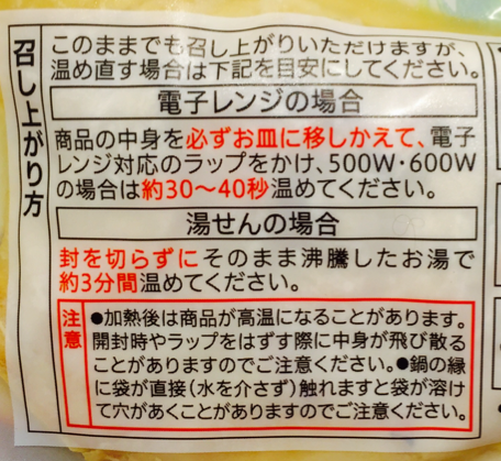 - あたためて食べる場合は、湯せんで3分温めます。