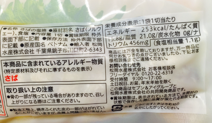 参考食材 セブンイレブン サバの塩焼き