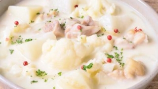 1. 今回は塩分をなくすため、ベーコンの代わりに豚ロースを使いました。