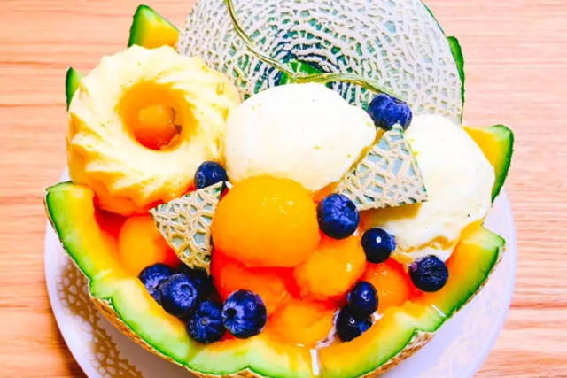 - トッピング用のメロンは、皮を残しておくとお洒落で良いと思います。