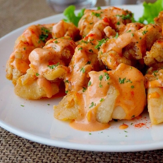 日本では、マヨネーズとケチャップを混ぜたものを「オーロラソース」と呼びます。料理によって、ウースターソース、牛乳、レモン汁などを加えて味を調えて使われてます。特に魚介類と合わせることが多いです。