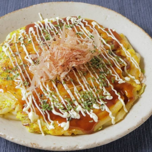 - 器に盛りお好み焼きソースをかけ、かつお節、青のりを振り完成です。