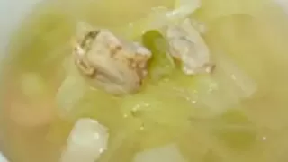 5. ニラと白菜キムチをつけ汁ごと加え、レンジ600Wで1分加熱する。