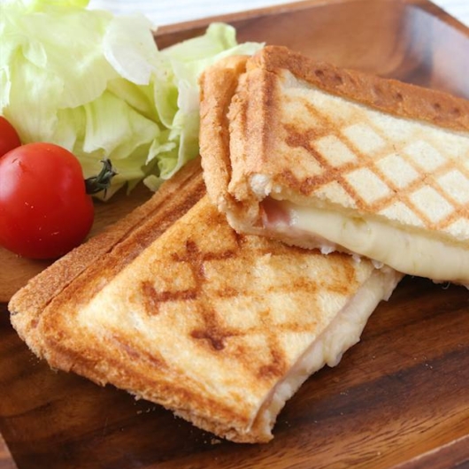 ホットサンドメーカーを使った簡単で美味しい、ハムチーズホットサンドのご紹介です。ちょっとひと手間ですが、プレートにもバターを塗って焼く事によって食パンが、香ばしくサクッとした食感になりますよ。アツアツのとろけるハムチーズサンドをお楽しみください。ぜひ、試してみてください。