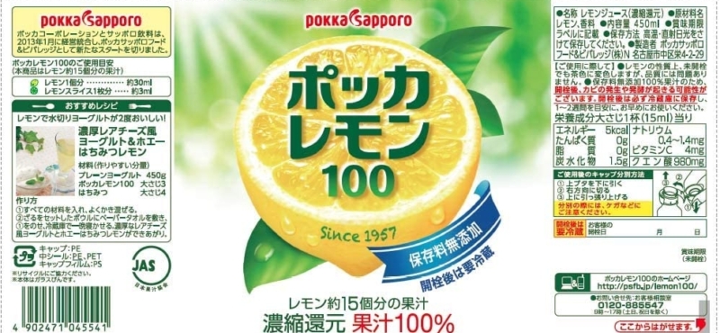 ポッカサッポロ ポッカレモン100 450ml×3本