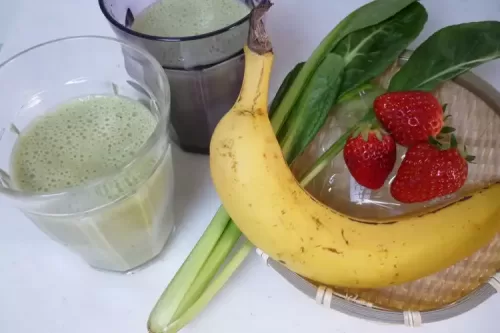- 小松菜を足すと、サッパリスムージーになります。