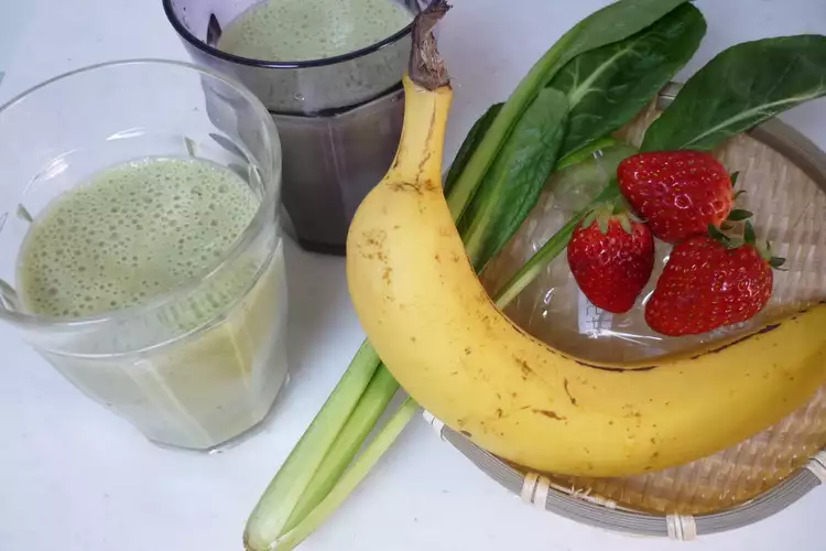 - 小松菜を足すと、サッパリスムージーになります。