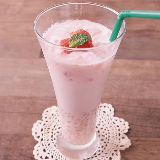 簡単、フレッシュないちごとバナナのスムージーのレシピです。いちごのつぶつぶな食感もいいアクセントですよ。牛乳の代わりに豆乳を使ったり、氷を入れず、いちごとバナナを凍らせてお作りいただいても、美味しく仕上がります。おやつにも朝ごはんの代わりにもぴったりです。ぜひお試しくださいね。