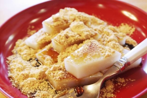 6. よく冷えたら水気を切って、きな粉や砂糖をかけて完成です。