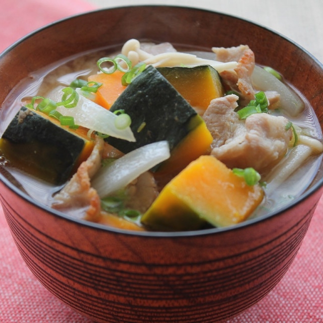 豚バラ薄切り肉やかぼちゃ、わかめ、タマネギを使った、レンジで作る味噌汁のレシピです。 お味噌汁を鍋で作るのが面倒だと思ったら、レンジで速攻で作ちゃいましょう。簡単時短レシピで、しかも健康を考えたレシピです。豆腐もわかめも味噌も栄養満点、 短い時間でサッと作れる基本の味噌汁です。
